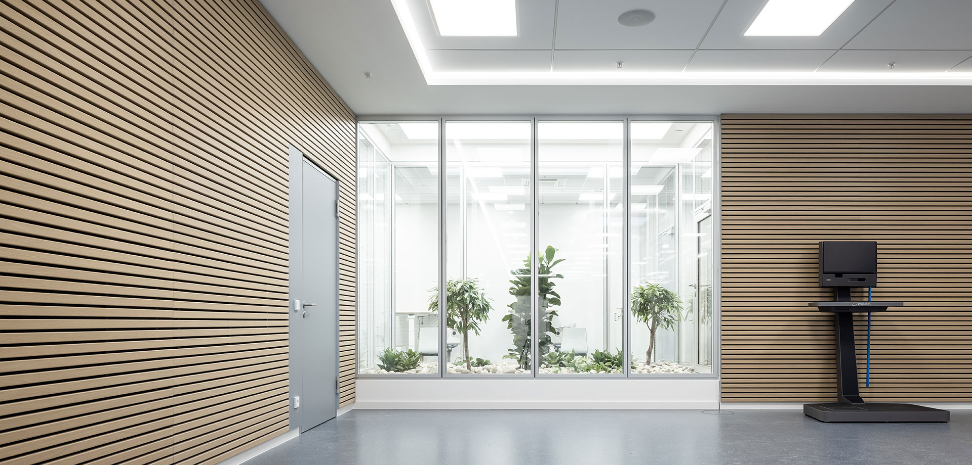 Interior walls can be covered top to bottom with this full-height solution. CARVART’s paneling system allows mosaic designs to be composed as either full or partial walls using standard sizes that coordinate by sharing frame options and mounting hardware.